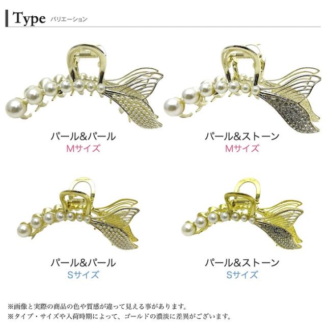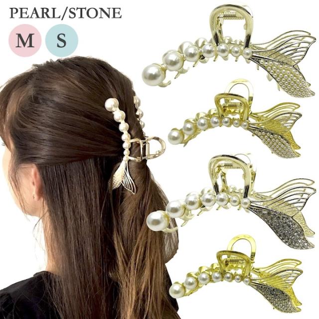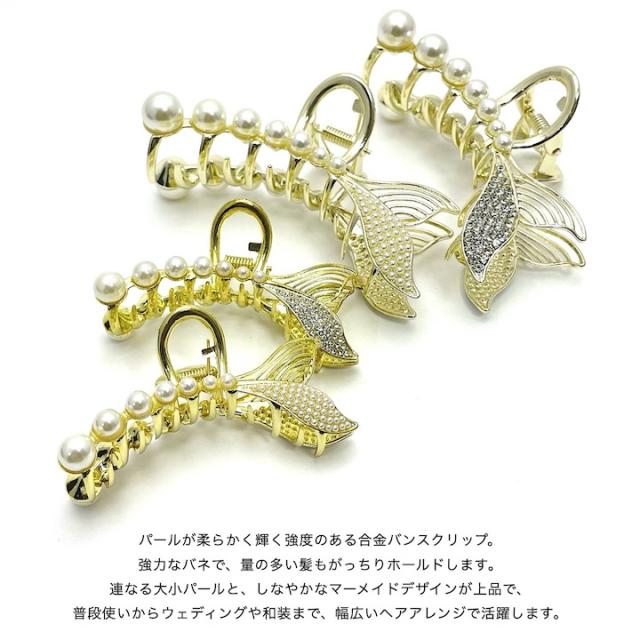 ヘアクリップ 韓国 パール おしゃれ バンスクリップ 2サイズ パール ストーン 合金 ゴールド 金魚 人魚 マーメイド ヘアアクセサリー バンス 大きめ 小さめ レディース 髪留め 大人 子供 おしゃれ かわいい 結婚式 和装 浴衣 まとめ髪 髪飾り MC-VA20012