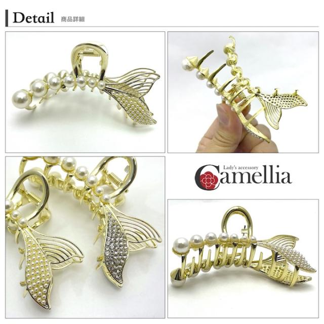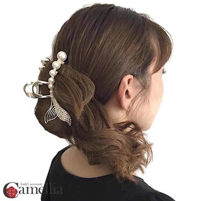 【関連ワード】バンスクリップ 髪留め ヘアクリップ パール ストーン キラキラ 人魚 金魚 まとめ髪 ヘアアクセサリー おしゃれ お洒落 大人