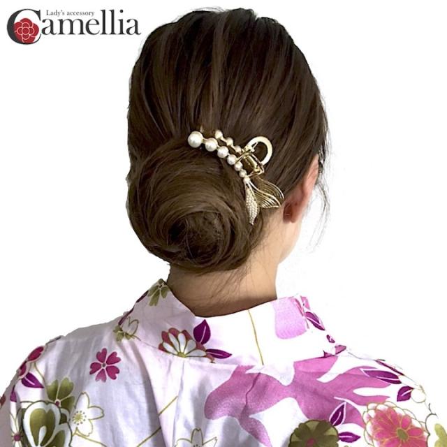 連なる大小パールと、マーメイドデザインが上品で、 普段使いからウェディングや夏らしい浴衣や着物などの和装まで、幅広いヘアアレンジで活躍します。
