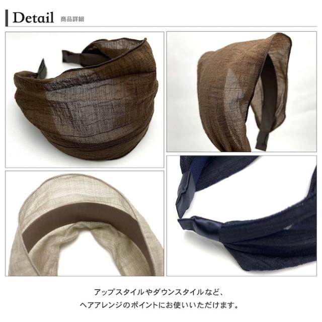 【商品名】カチューシャ(幅広・リネン風・しわ加工)