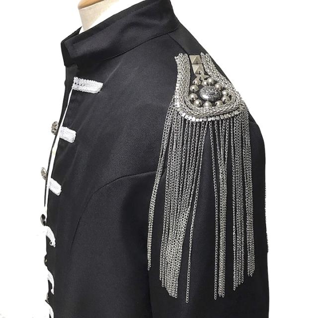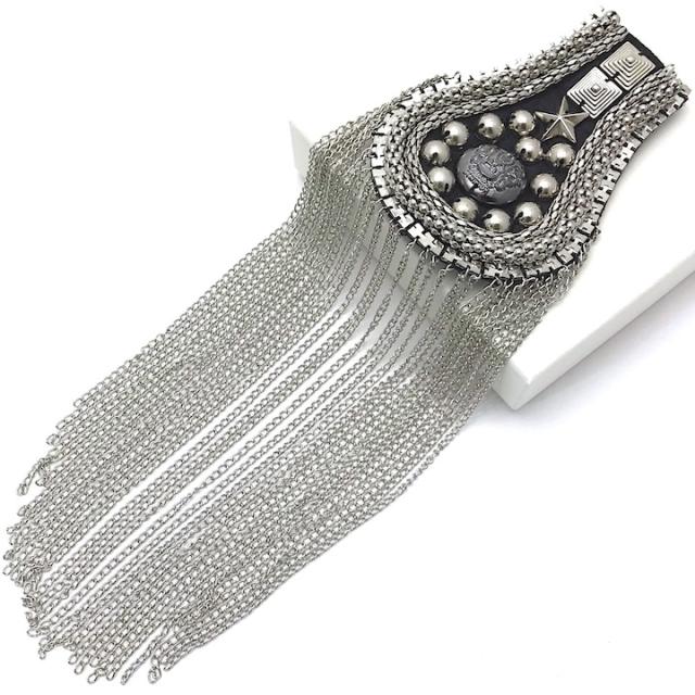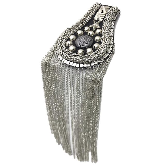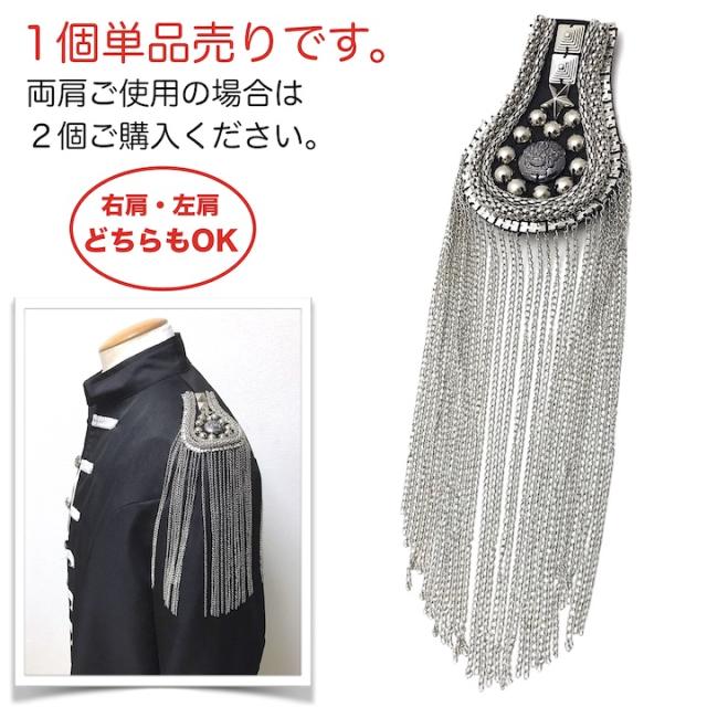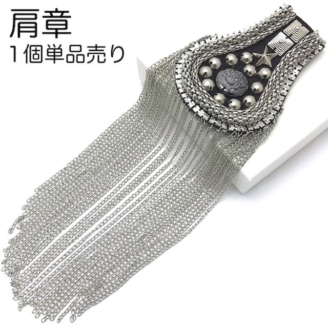 肩章 1個単品売り ロング チェーン付き スタッズ シルバー 貴族 王子様 ミリタリー 衣装 ステージ衣装 ハロウィン 文化祭 コスプレ ダンス 腕章 ワッペン 肩 飾り パーツ 装飾 PP-KS20006