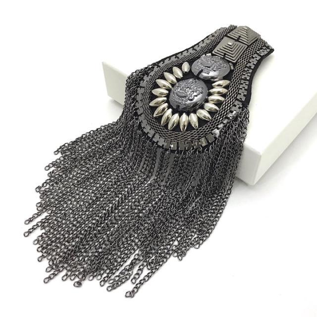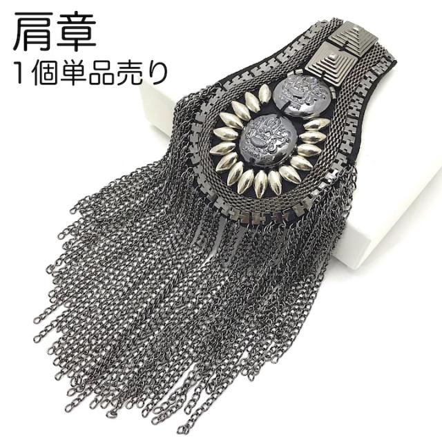肩章 1個単品売り チェーン付き スタッズ ガンメタ 黒 貴族 王子様 ミリタリー 衣装 ステージ衣装 ハロウィン 文化祭 コスプレ ダンス 腕章 ワッペン 肩 飾り パーツ 装飾 PP-KS20004