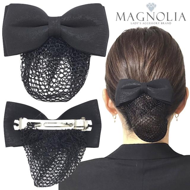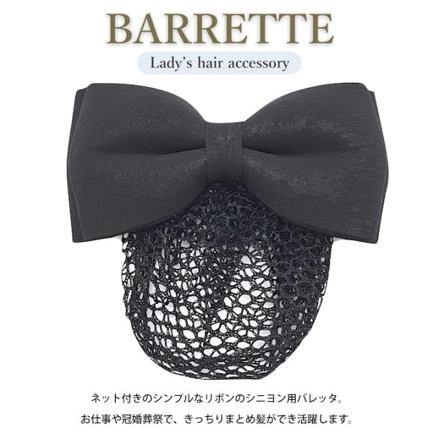 ネット付き シニヨンバレッタ バレッタ 髪留め ヘアバレッタ リボン ネット ヘアアクセサリー ネットバレッタ シンプル 無地 就活 オフィス 会社 仕事 法事 黒 ブラック フォーマル 冠婚葬祭 お団子ネット シニョンネット ヘアアレンジ まとめ髪 MM-BA17084