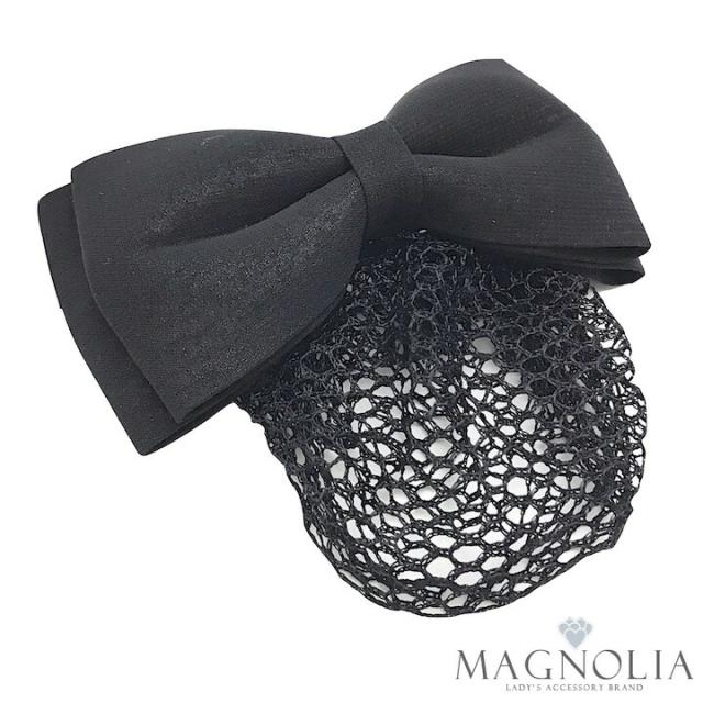ネット付きのブラックリボンのシニヨン用バレッタ。