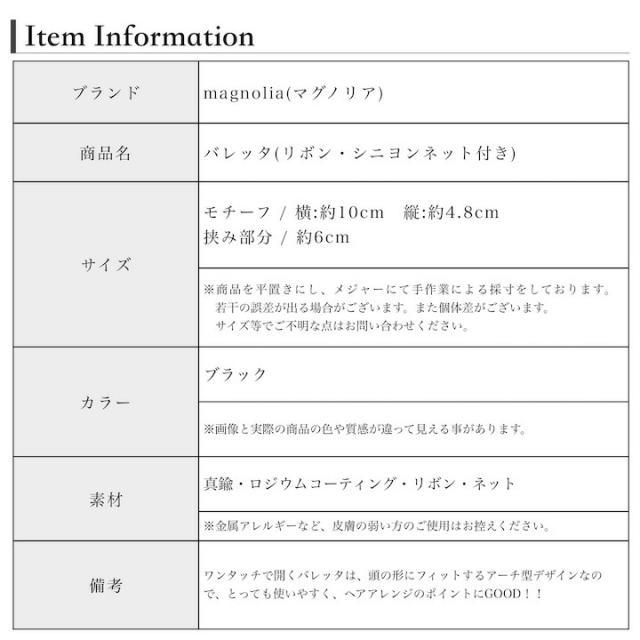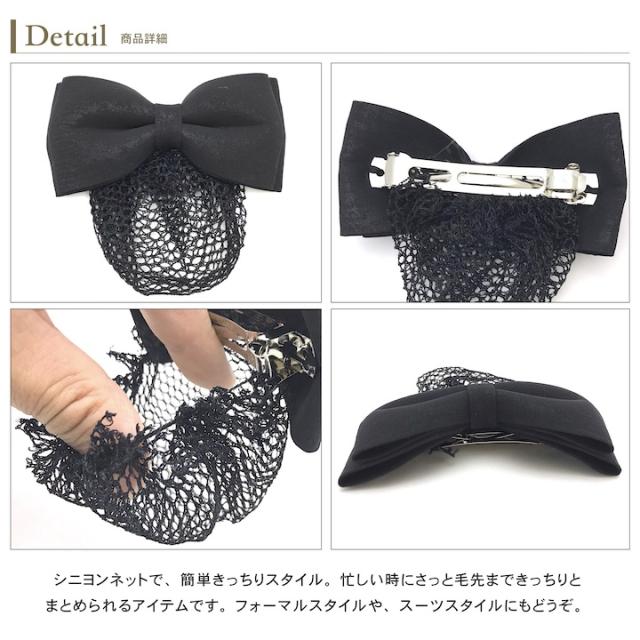 ●メール便送料無料●ネット付きのリボンのシニヨンバレッタ