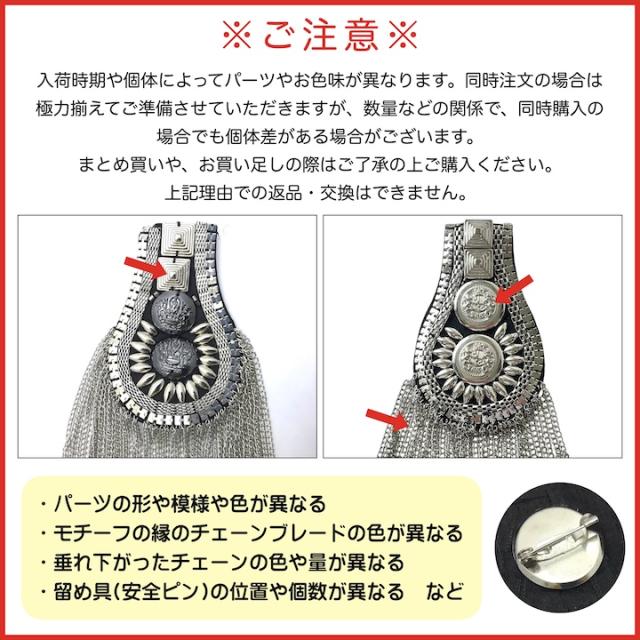 ※裏に付いている安全ピンだけだとモチーフが肩から浮いてしまう場合がございます。フェルト生地でできているので、縫い付け(補強)も簡単です!ダンス・コスプレ衣装などに使用する場合は、縫い付けがオススメです。