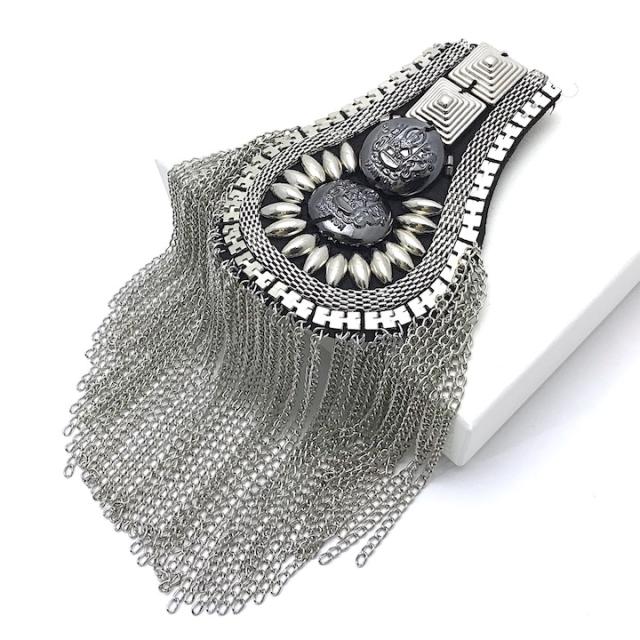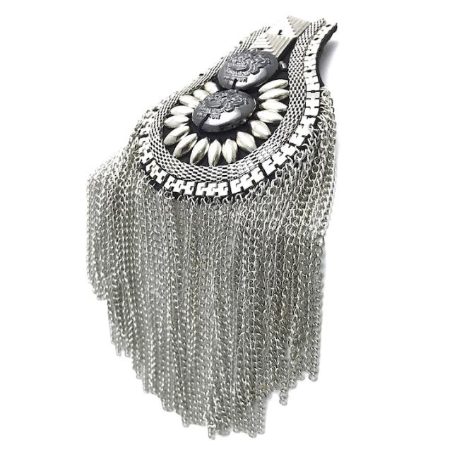肩章 1個単品売り チェーン付き スタッズ シルバー 貴族 王子様 ミリタリー 衣装 ステージ衣装 ハロウィン 文化祭 コスプレ ダンス 腕章 ワッペン 肩 飾り パーツ 装飾 PP-KS20002