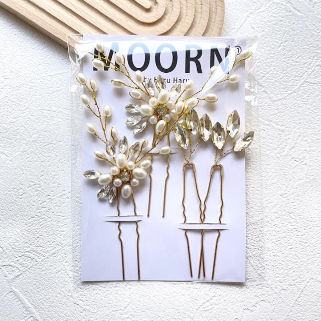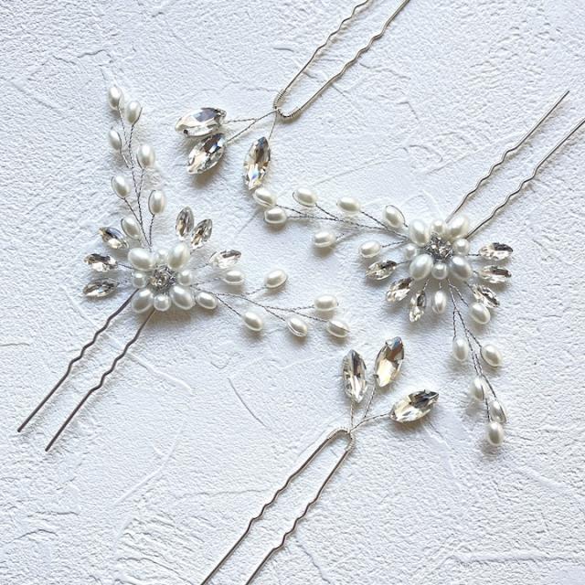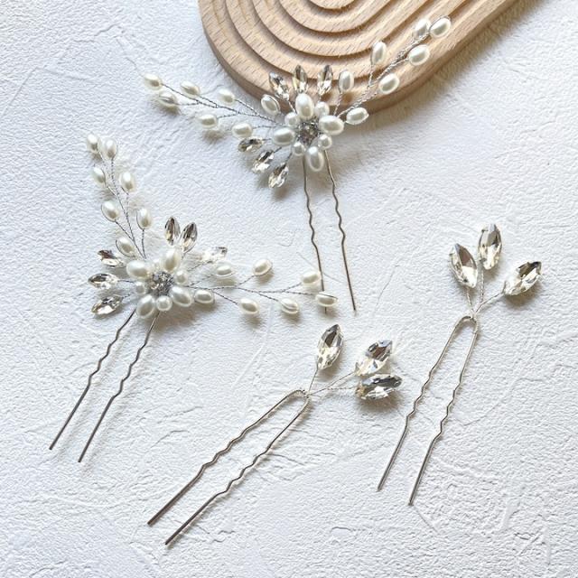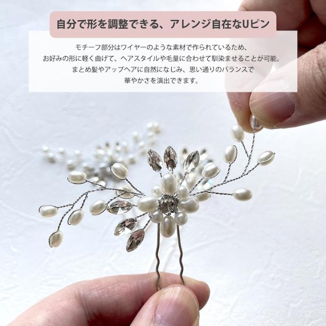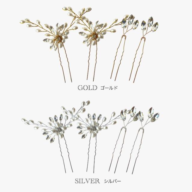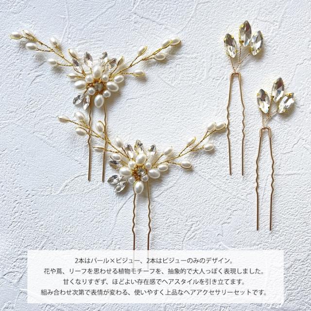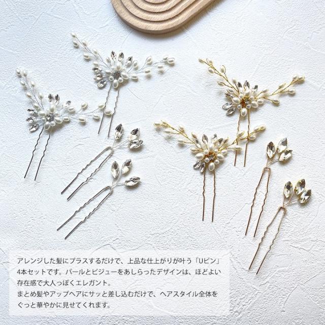 Uピン 4点セット パールuピン かんざし ヘアアクセサリー 結婚式 ゲスト お呼ばれ ヘアピン セット ヘッドアクセサリー パーティー 大人 かわいい 飾りピン パール お洒落 可愛い おしゃれ 花 植物 リーフ セット ビジュー 髪飾り ヘアアクセサリー ゴールド シルバー