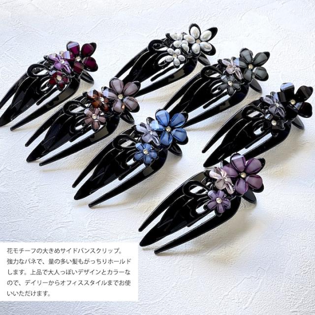 ヘアクリップ 花 髪留め ヘアアクセサリー 大きめ サイド バンスクリップ 花モチーフ バンスクリップ 大人 お洒落 ストーン パール シンプル 黒 ブラック 赤 ピンク 紫 グリーン サイドバンスクリップ ヘアクリップ バンス レディース 髪留め