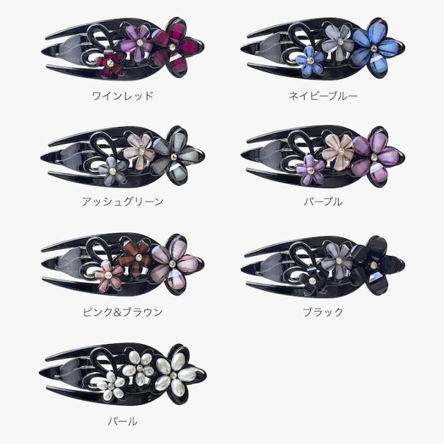 花モチーフが上品で可愛いサイドバンスクリップ。バネも強力なので、どんな多い髪もがっちりホールドします。