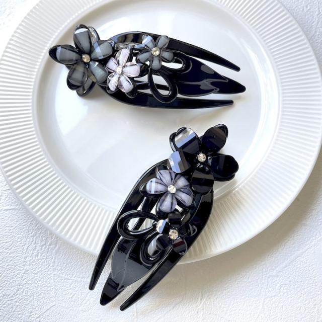 【商品名】サイド バンスクリップ (ストーン・パール・花モチーフ)