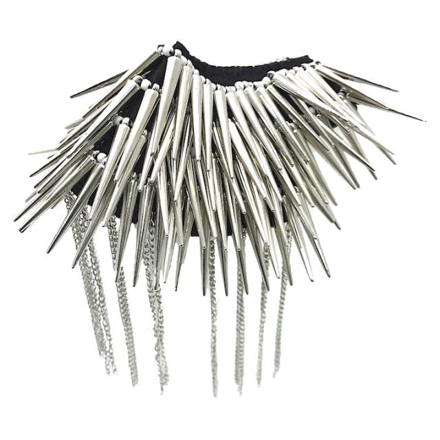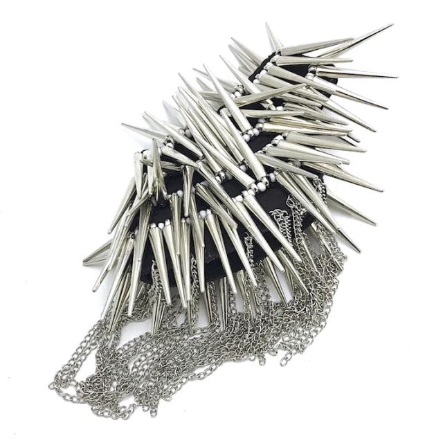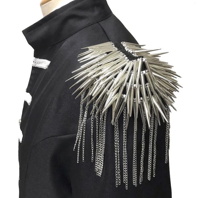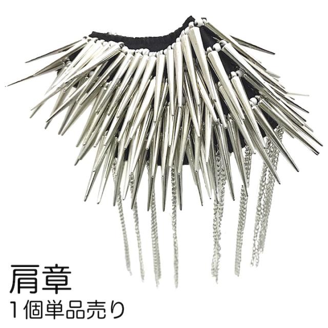 肩章 1個単品売り トゲトゲ チェーン付き スタッズ 銀 シルバー 貴族 王子様 ミリタリー 衣装 ステージ衣装 ハロウィン 文化祭 コスプレ ダンス 腕章 ワッペン 肩 飾り パーツ 装飾 PP-KS20009