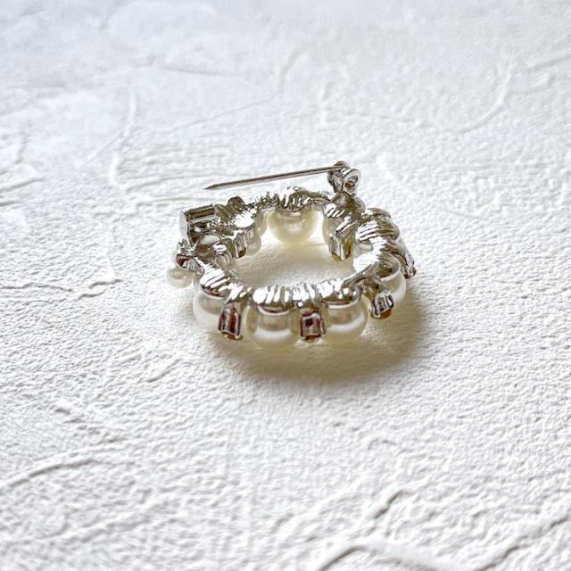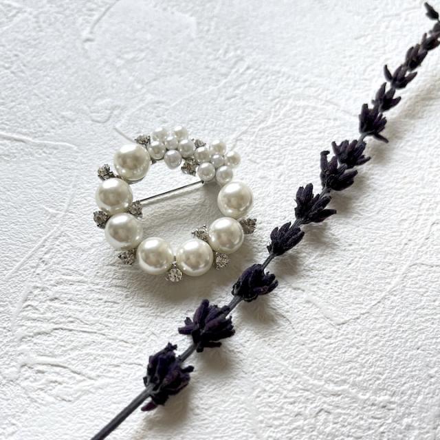 ブローチ パール 花 パールブローチ リース 入学式 卒業式 入園式 卒園式 ラインストーン 中抜き サークル ブローチ シルバー シンプル 結婚式 ゲスト おしゃれ コサージュ レディース アクセサリー ピンブローチ フープ リース プレゼント