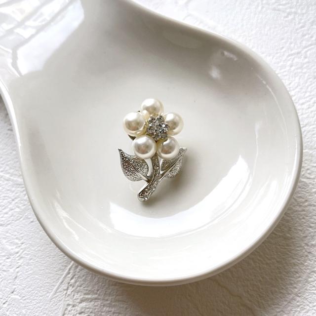 パール ブローチ 花