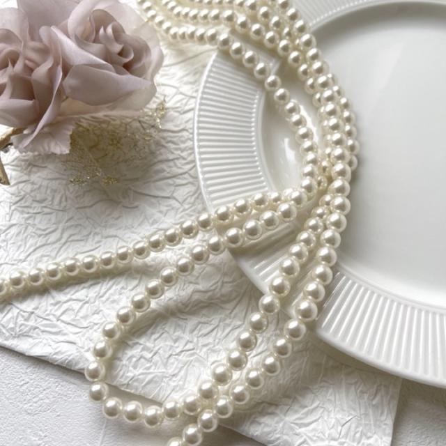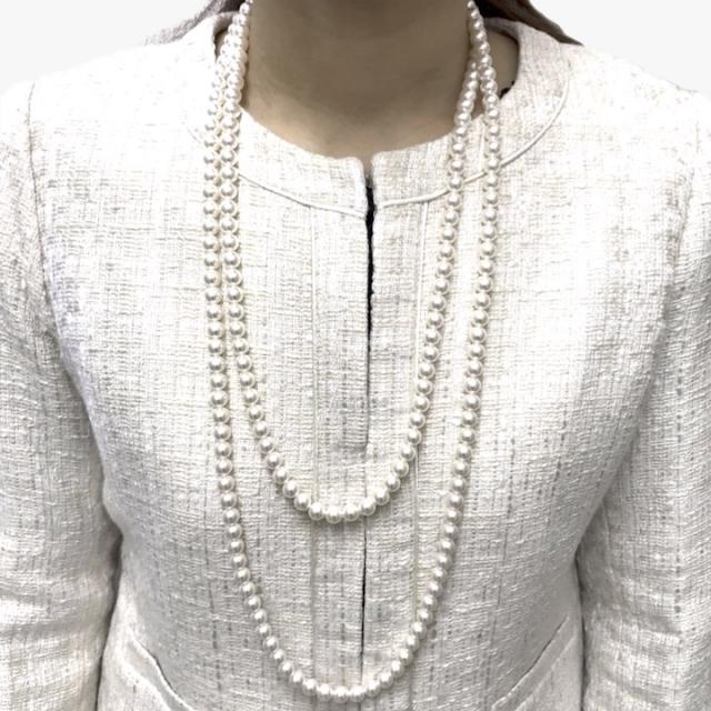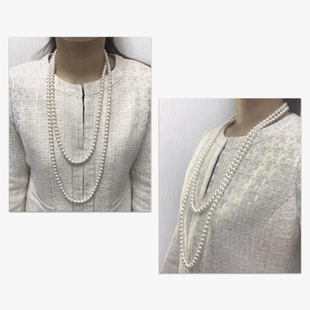 シンプルなパールの2連ロングパールネックレス!結婚式や入学式などセレモニーにも人気!