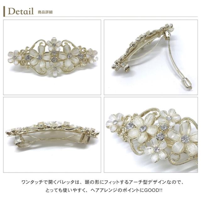 普段使いはもちろん、結婚式などのフォーマルシーンやパーティーシーンを華やかに演出する人気バレッタ。