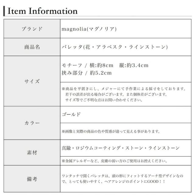 【商品名】バレッタ(花・アラベスク)