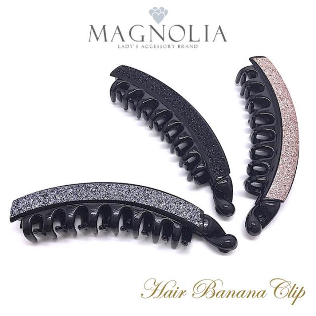 シンプルだけどキラキラのラメグリッターがアクセントになる人気バナナクリップ!ヘアアレンジのポイントにお使いいただけます。