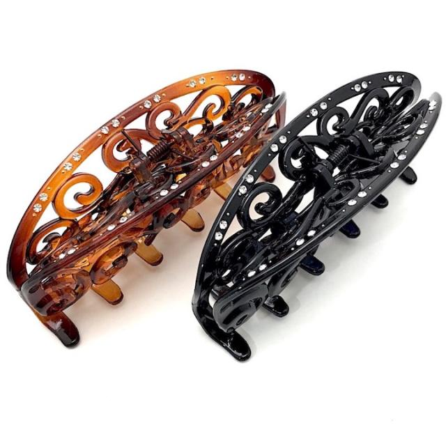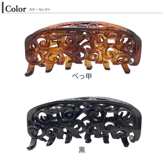 バンスクリップ ヘアクリップ 大きめ べっ甲 黒 ラインストーン 髪留め ヘアバンスクリップ アラベスク 大人 レディース ヘアアクセサリー MC-VA17003