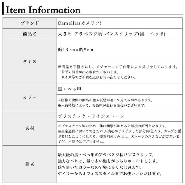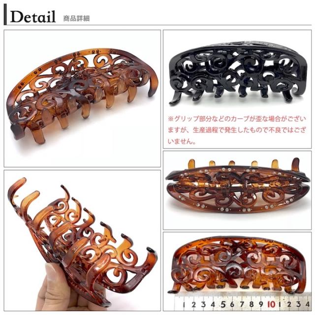 【関連ワード】バンスクリップ 大 大きい BIG べっ甲 黒 ラインストーン アラベスク 蔦柄 唐草模様 中抜き シンプル ヘアクリップ クリップ バンス ブラック 大きめ レディース まとめ髪 鼈甲 べっこう ヘアアクセサリー ヘアアクセ べっこう 鼈甲 ブラック アセチ おしゃれ お洒落 仕事 大人 大人っぽい 上品 ヘアアレンジ バレンタイン ホワイトデー 母の日 誕生日 プレゼント ギフト