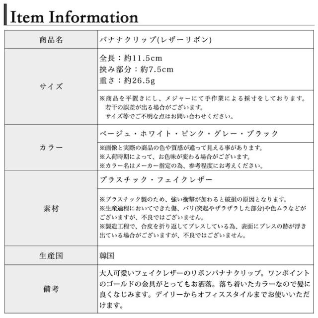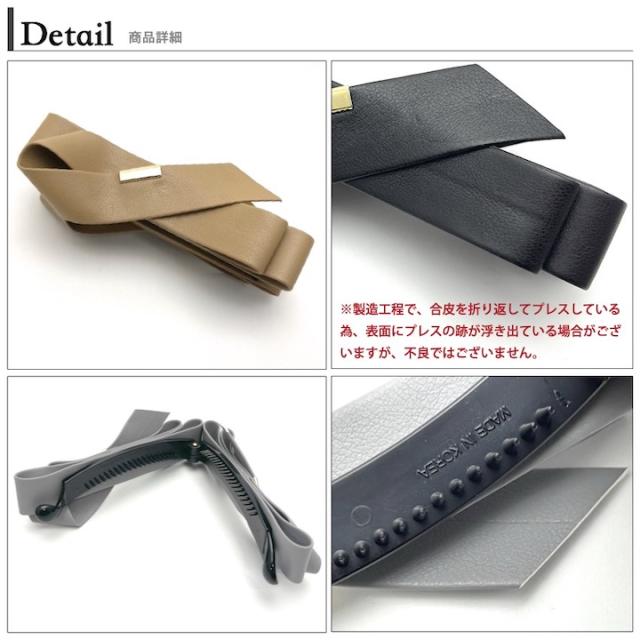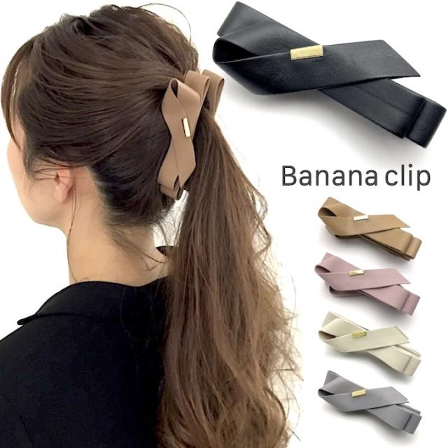 バナナクリップ 髪留め レザー シンプル リボン 大人 可愛い ヘアクリップ レディース お洒落 フェイクレザー 合皮 上品 ヘアアクセサリー 黒 ブラック ピンク ベージュ グレー ホワイト ブラウン 韓国 通勤 通学 MM-BNN20005