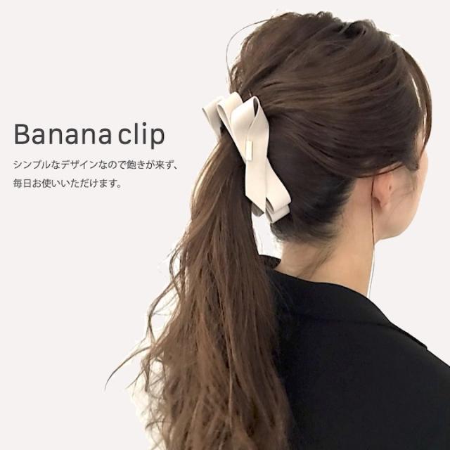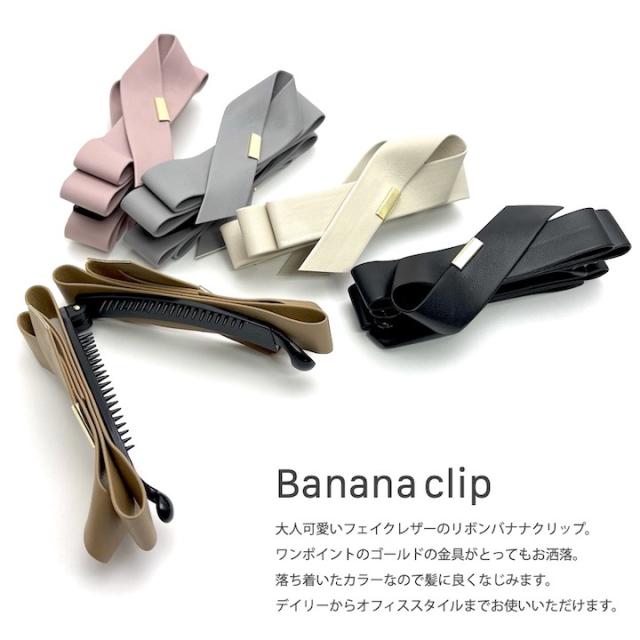大人可愛いフェイクレザーのリボンバナナクリップ。ワンポイントのゴールドの金具がとってもお洒落。