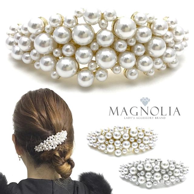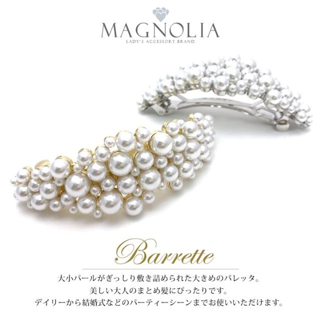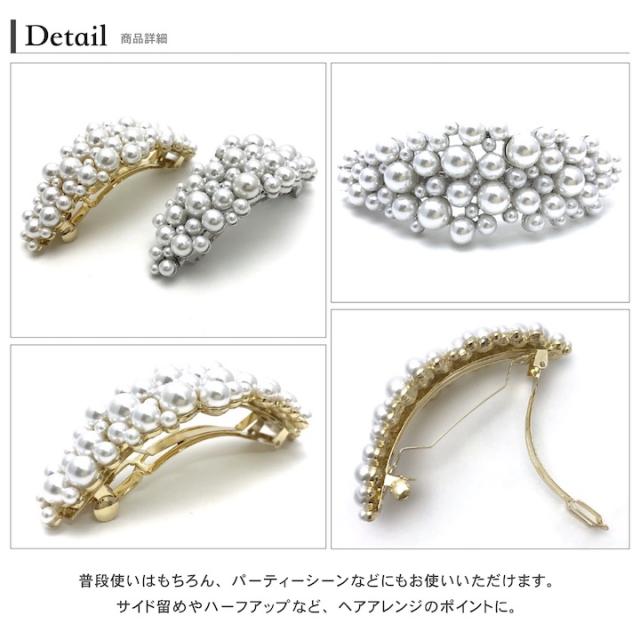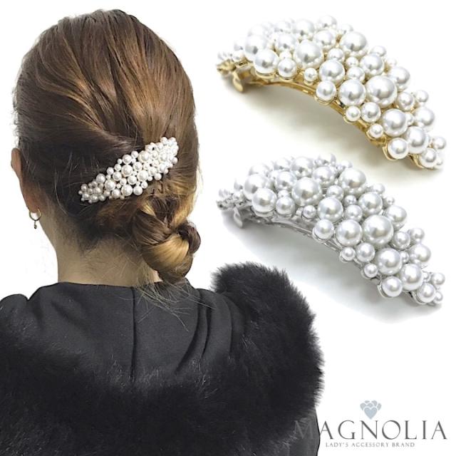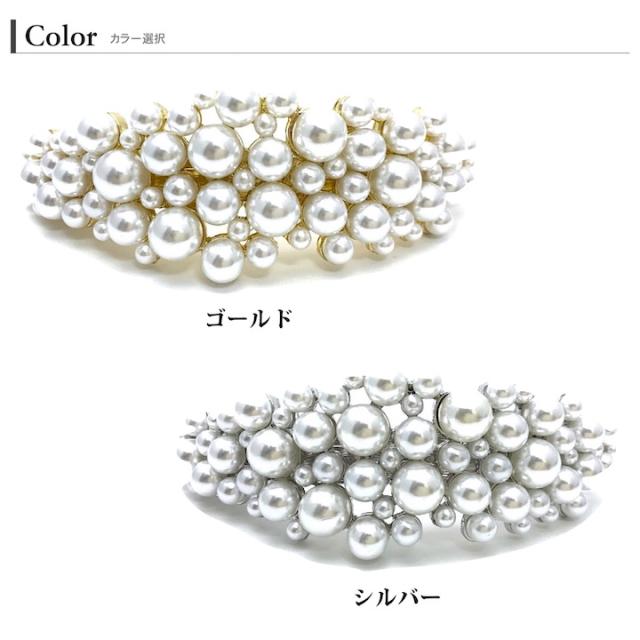 パール バレッタ ゴールド シルバー 金 銀 レディース 大きい おしゃれ まとめ髪 結婚式 ゲスト 披露宴 二次会 入学式 卒業式 パーティー お呼ばれ ヘアアクセサリー プレゼント