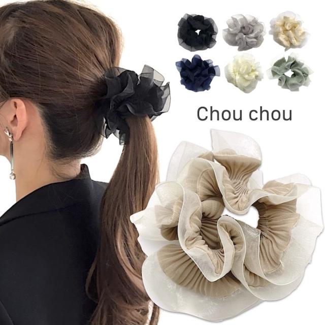 シュシュ プリーツ加工 シュシュ 大人 可愛い ボリューム シンプル ポニーテール ヘアアレンジ お洒落 おしゃれ 大人可愛い くすみカラー ヘアゴム ゴムポニー ヘアポニー レディース 女性 ヘアアクセサリー プレゼント MM-CHO22001