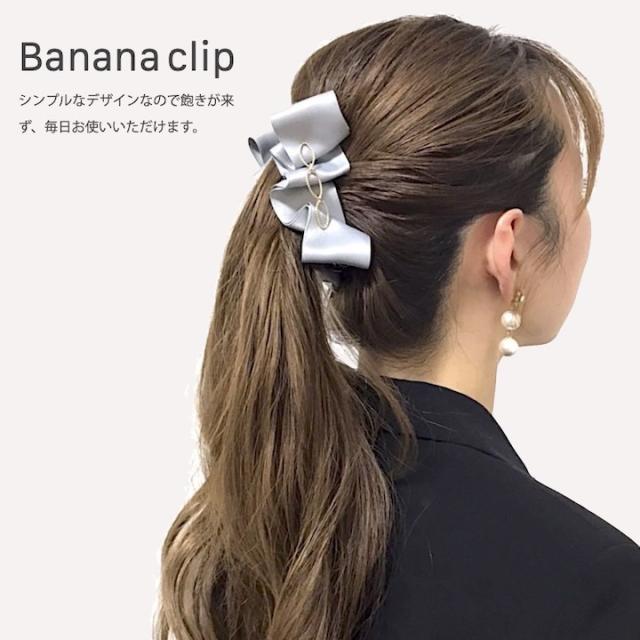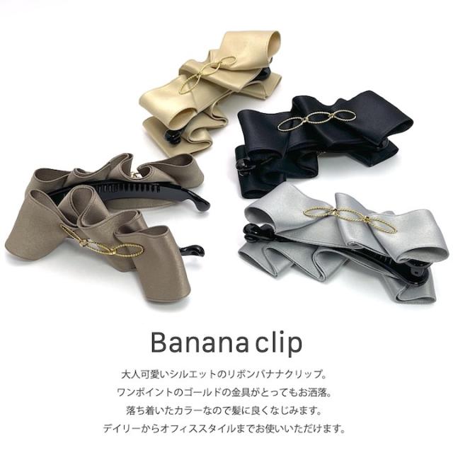 大人可愛いシルエットのリボンバナナクリップ。ワンポイントのゴールドの金具がとってもお洒落。