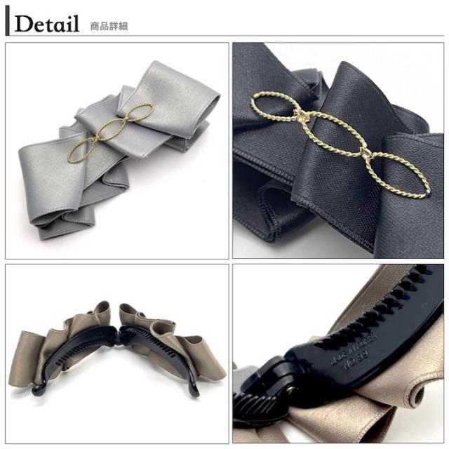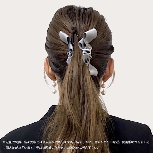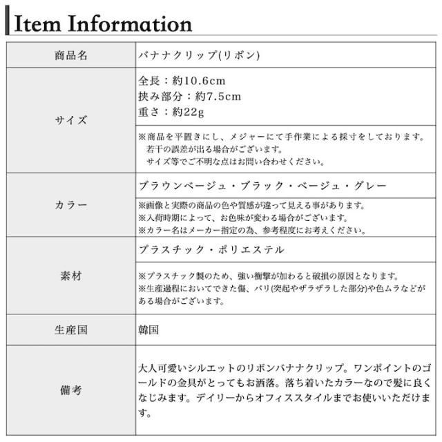 バナナクリップ リボン 大人 可愛い ヘアクリップ レディース 髪留め お洒落 おしゃれ ヘアアクセサリー 黒 ブラック ブラウン ベージュ グレー 韓国 通勤 通学 MM-BNN20007