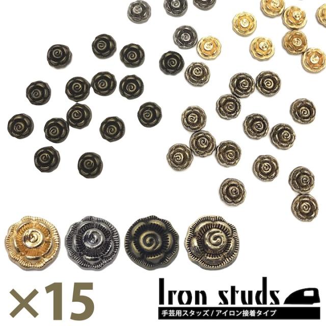 スタッズ 手芸用品 パーツ アイロン接着 薔薇 15個セット バラ 花 ローズ ホットフィックス 手芸 DIY 材料 デコレーション ハンドメイド メタル ワッペン アップリケ パーツ ホットフィックス デコパーツ H-i-studs-8002