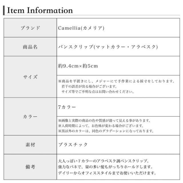 【商品名】バンスクリップ(マットカラー・アラベスク)