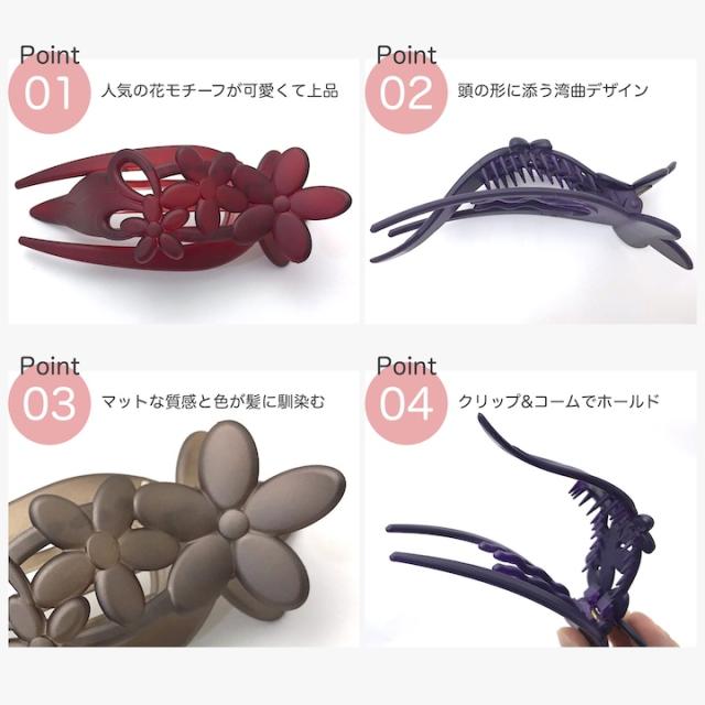 【商品名】サイド バンスクリップ (マット・花モチーフ)