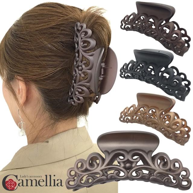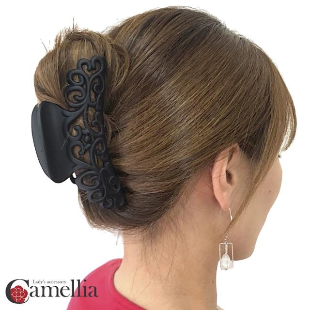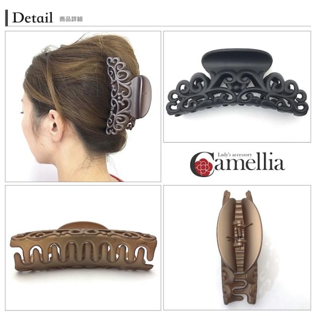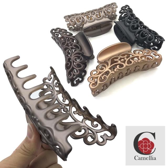 バンスクリップ アラベスク ヘアクリップ 大人 マット シンプル 黒 ブラック ブラウン 蔦柄 バンス レディース 髪留め マットカラー まとめ髪 大きめ ヘアアクセサリー MC-VA20004