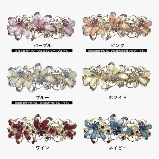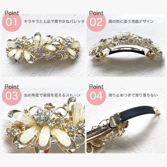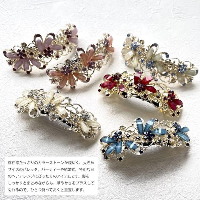 普段使いはもちろん、結婚式などのフォーマルシーンやパーティーシーンを華やかに演出する人気バレッタ。
