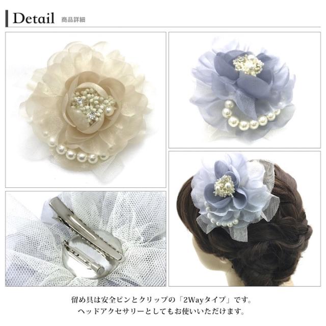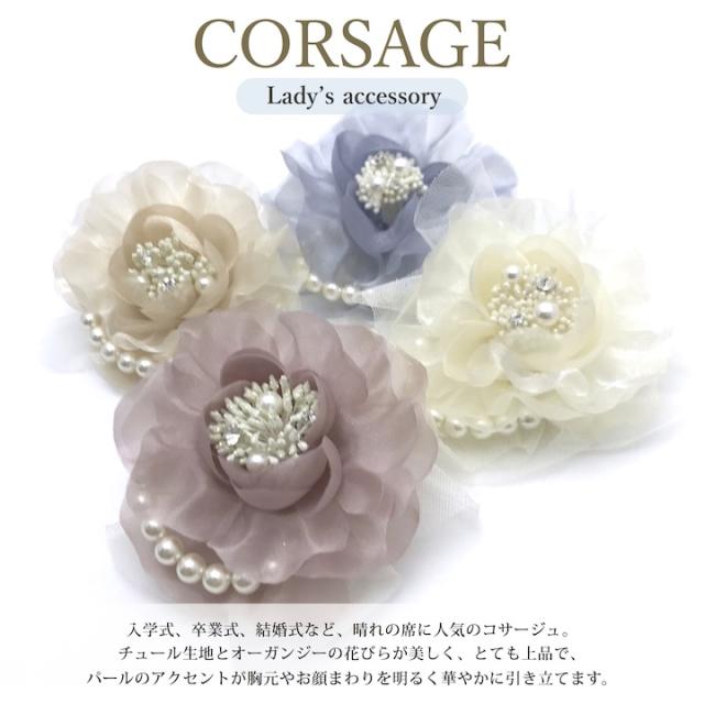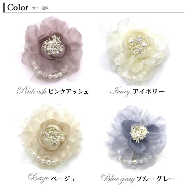 コサージュ 花 フォーマル オーガンジー チュール コサージュ 結婚式 披露宴 ドレスアップ フォーマル 入学式 卒業式 入園式 卒園式 ママコーデ 母 白 アイボリー ピンク グレー ベージュ 花 パール ヘッドドレス 髪飾り お呼ばれ パーティー MM-COS17002