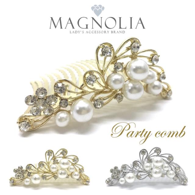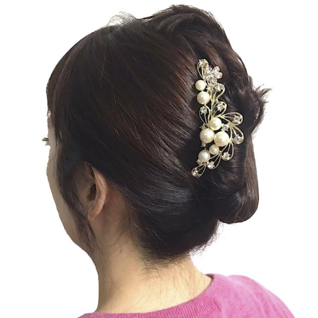 コーム かんざし ヘアコーム パール ラインストーン 夜会巻き ゴールド シルバー 金 銀 ヘアアクセサリー キラキラ ヘッドドレス 結婚式 二次会 入学式 お呼ばれ パーティー MM-COM17004