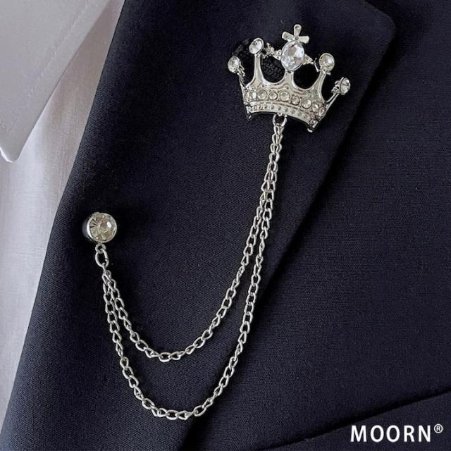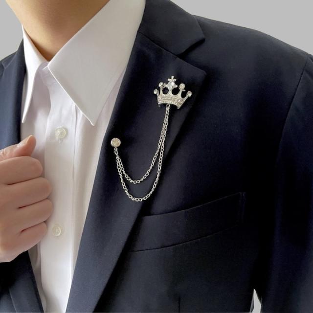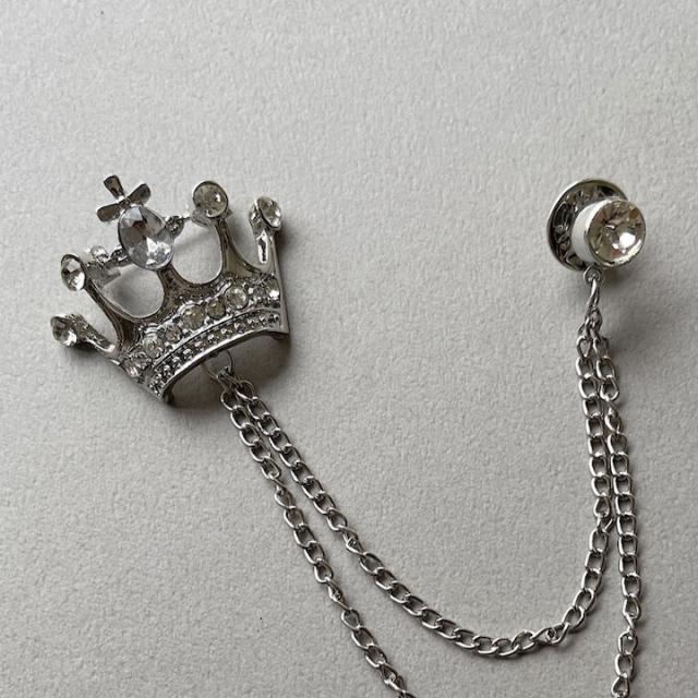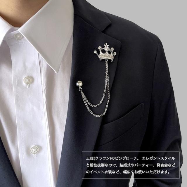 ブローチ メンズ 王冠 クラウン チェーン ピンブローチ 王冠 シルバー ラペルピン 結婚式 入学式 卒業式 発表会 キッズ 男の子 子供 普段使い スーツ おしゃれ 人気 ピンブローチ メンズ ブローチ プレゼント 訳あり SM-BRC15018