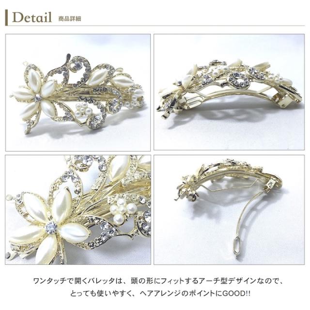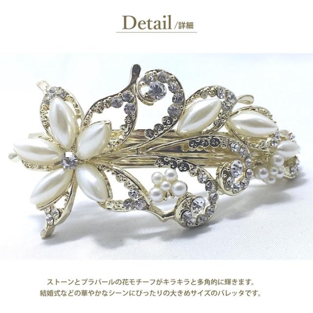 バレッタ 大きめ ヘアクリップ 花 パール ヘアアクセサリー 結婚式 お呼ばれ 花モチーフ ゴールド シルバー パールバレッタ 髪留め キラキラ 華やか ラインストーン フラワー ゴージャス 植物 まとめ髪 結婚式 お呼ばれ 上品 フォーマル 披露宴 QQ-BA16083