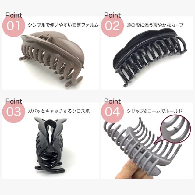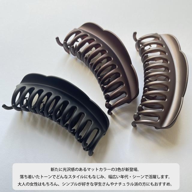 大人可愛い大きいサイズのバンスクリップ。バネも強力なので、どんな多い髪もがっちりホールドします。落ち着いたカラーなので髪に良くなじみます。
