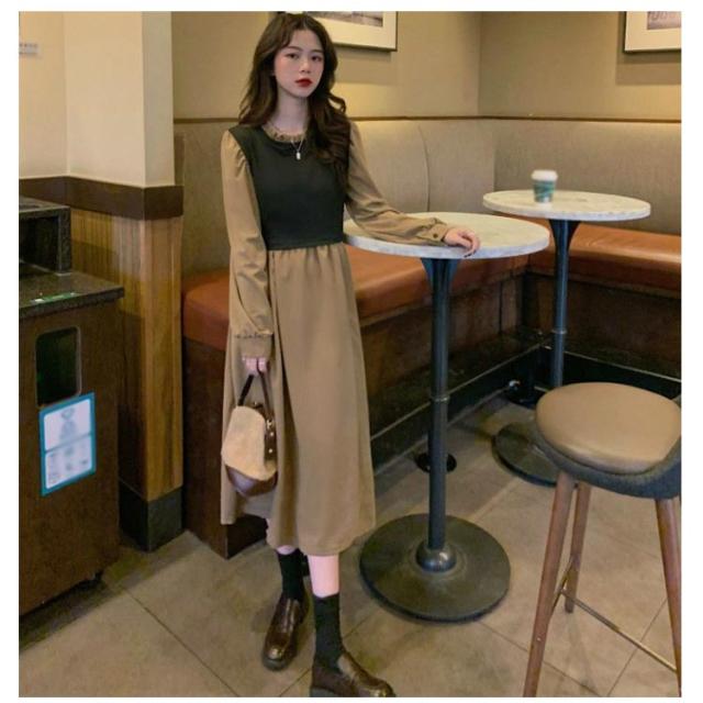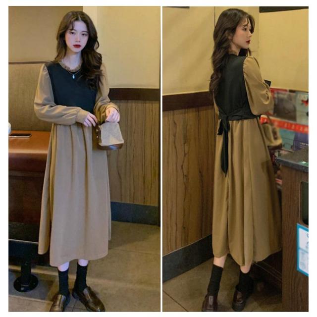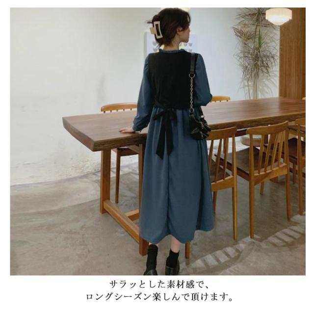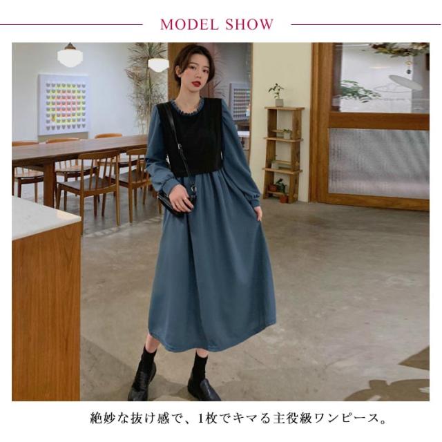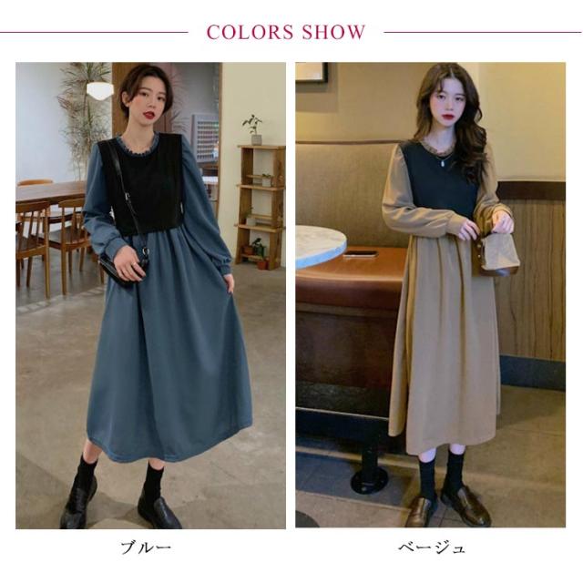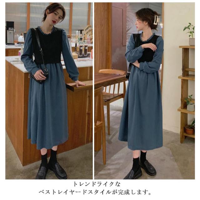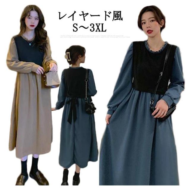 送料無料 ロングワンピース レディース ワンピース マキシ丈 レイヤード 可愛い 韓国 ファッション 大きいサイズ マキシワンピース 体型カバー カジュアル かわいい おしゃれ デイリー デート