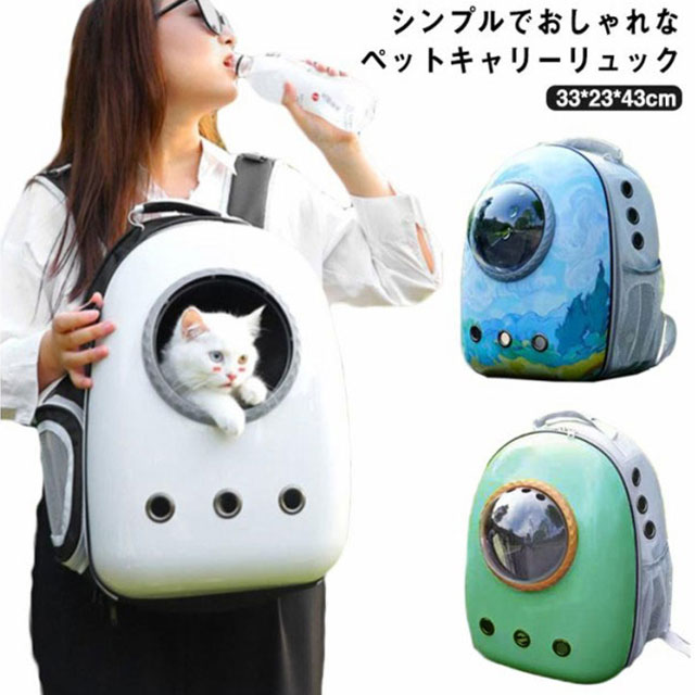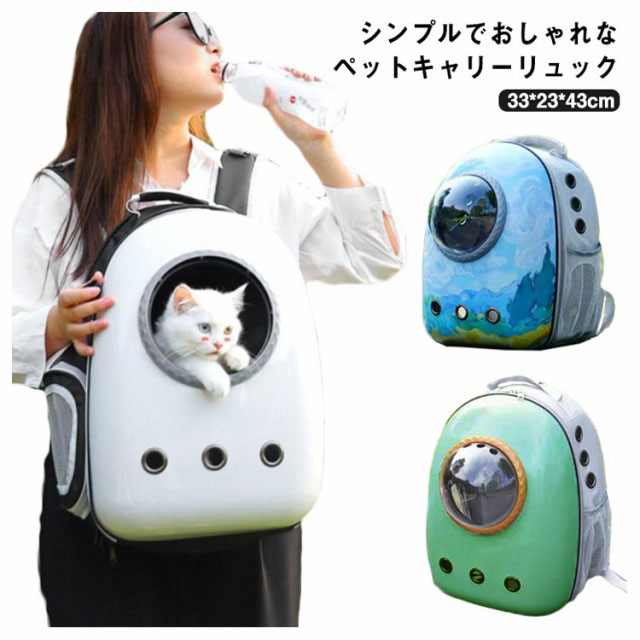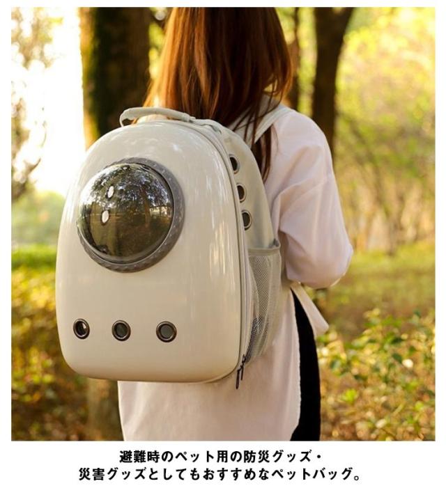 | シンプルでおしゃれなペットキャリーリュック 正面の透明なドーム窓から宇宙船に乗っているみたいにバックを開けずにいつでもペットの顔が見れるので 外の景色が見えるため、ペットへのストレスも軽減 遠出のお出かけやトリミング、病院の通院、旅行はもちろん、車でドライブ時にはペットキャリーケースとしても、 避難時のペット用の防災グッズ・災害グッズとしてもおすすめなペットバッグ。 | |