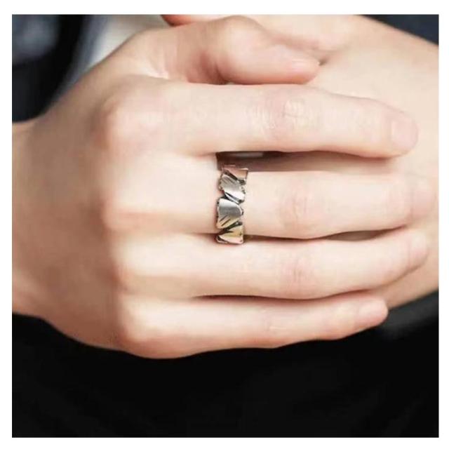 | デザイン性の満足度が非常に高いリングに仕上がっています。 このリングは約1.5-2mmの厚みがあり、存在感もバツグンです。 | |