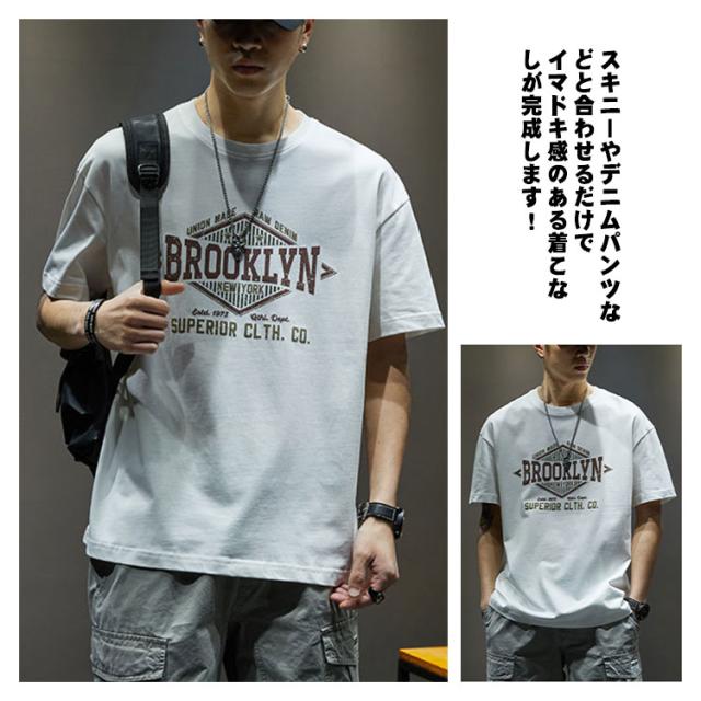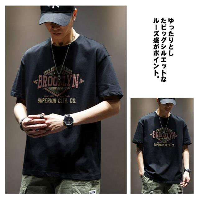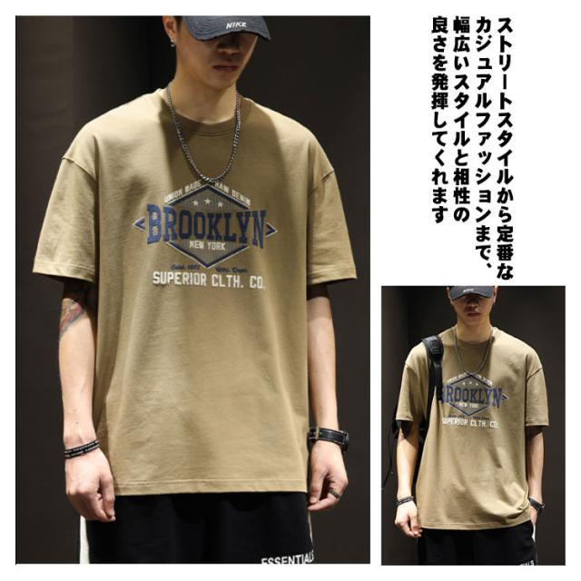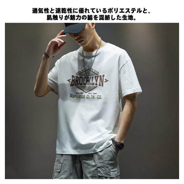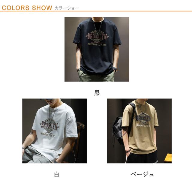 【送料無料】tシャツ カットソー メンズ 半袖 古着風 丸首 レトロ 英字 プリント アメカジ トップス シンプル アメリカン ストリート カジュアル タウンユース オーバーサイズ 大きいサイズ ベージュ 白 黒 ブラック