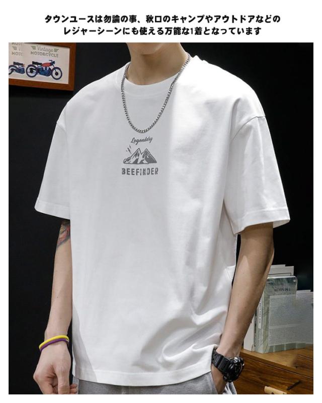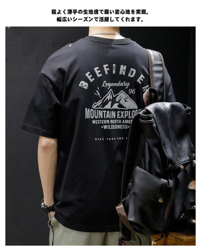 【送料無料】tシャツ メンズ アメカジ 半袖 丸首 バックプリント 古着風 レトロ カットソー トップス 山 英字 プリント ストリート カジュアル 大人 オーバーサイズ 大きいサイズ グレー 白 黒 かっこいい