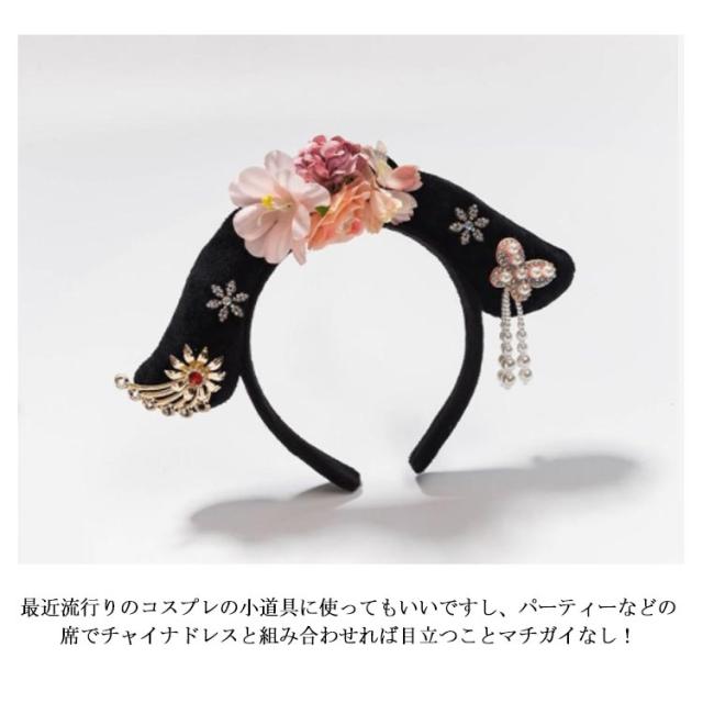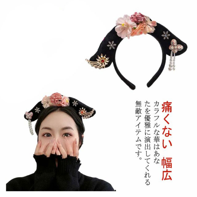 【送料無料】カチューシャ 痛くない 幅広 花 タッセル パール 中国風 民族風 コスプレ チャイナドレス ヘア飾り ヘアバンド レディース 大人 子供 女の子 中華服 仮装 おもしろい ハロウィン クリスマス