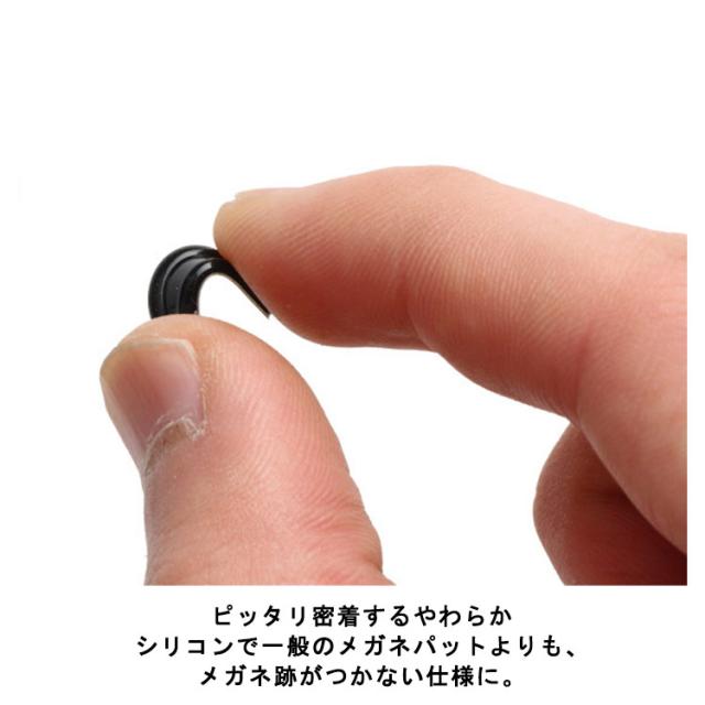 | メガネのずり落ち防止や眼鏡の跡がつかない為のシリコン鼻パッド!! カラーもクリアとブラックの2色!!サングラス、黒縁メガネ、おしゃれメガネにも使えるメガネの鼻パッド♪ D型の立体形状で最適な位置をキープ。滑り止め加工が皮脂でメガネを滑るのを防ぎ、フィット感を更に高めます。 ピッタリ密着するやわらかシリコンで一般のメガネパットよりも、メガネ跡がつかない仕様に。 長時間つけると、痛いメガネ跡のお悩みもサポートしてくれるメガネ跡防止パットです。 【メガネずり落ちないパットの使い方】 ■貼り方の流れ 1:まず洗剤で眼鏡を洗い、表面の油汚れが制品を傷つけ、効果に影響を与えないようにする。 2:滑り止めメガネをメガネの鼻あての弧の一番端の位置に貼り付けるとよい 3:はがす時、粘着力が大きいため、力を入れてください。ただし、指は貼り付け位置に直接触れないでください。 4:貼った後、はがさないでください。位置がずれている場合は、適切な位置に直接移動して、さらに押してください。 ■気を付ける点 ※貼るときは粘着面をさわらないよう注意 ※2次接着は鼻パッドに直接影響するので、水に触らないでください。接着性の制品は、防水洗浄の効果は限られています。頻繁に眼鏡を洗う場合は、鼻落ちに注意してください。貼って剥すと粘着力が弱くなるので、一度貼ったら剥さない。 | |