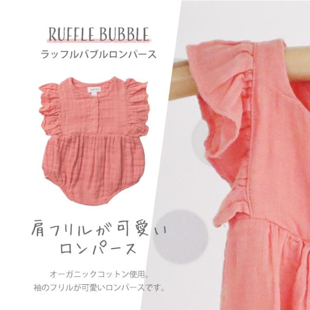 エンジェルディア オーガニック コットン ロンパース ラッフル バブル ベビー 70cm - 75cm 誕生日 ANGEL DEAR Ruffle Sleeve Bubble