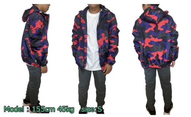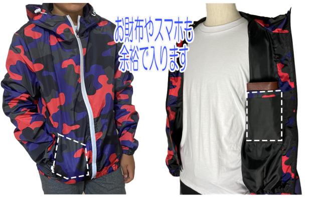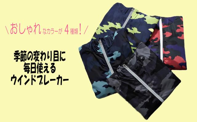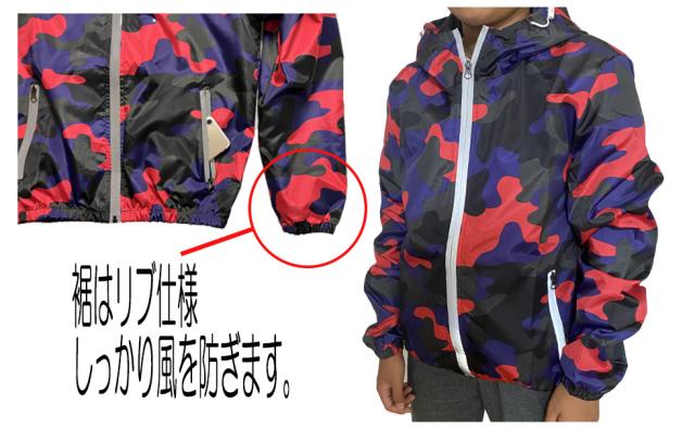 派手な迷彩柄がオシャレなウインドブレーカー、リフレクターが夜間の安全をカバー