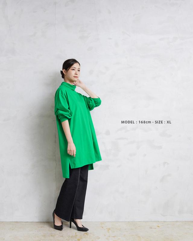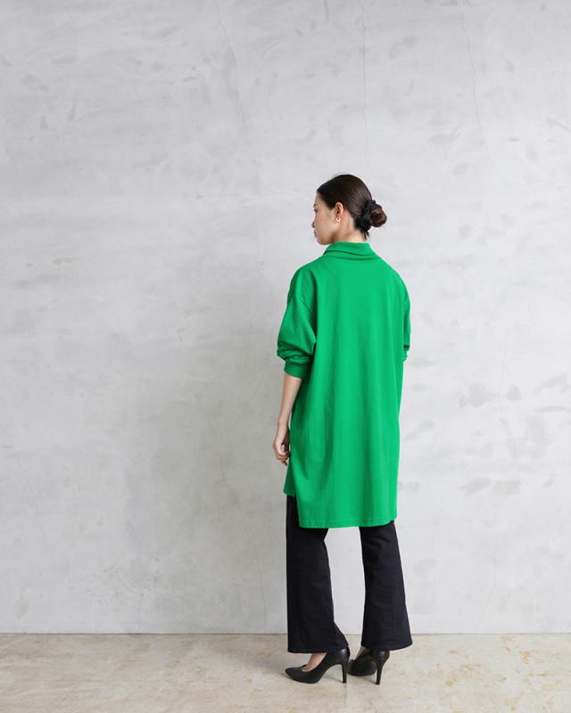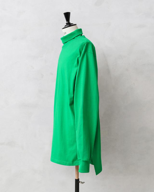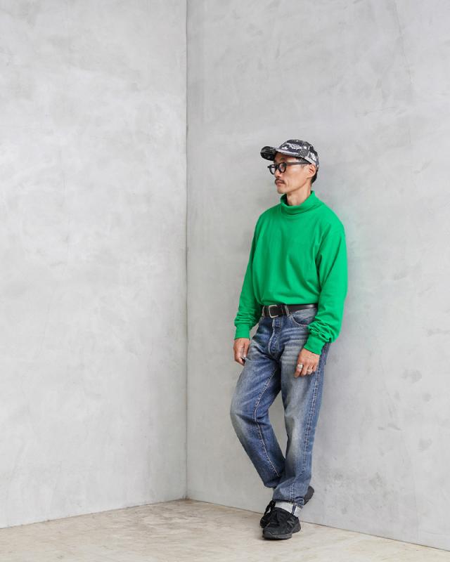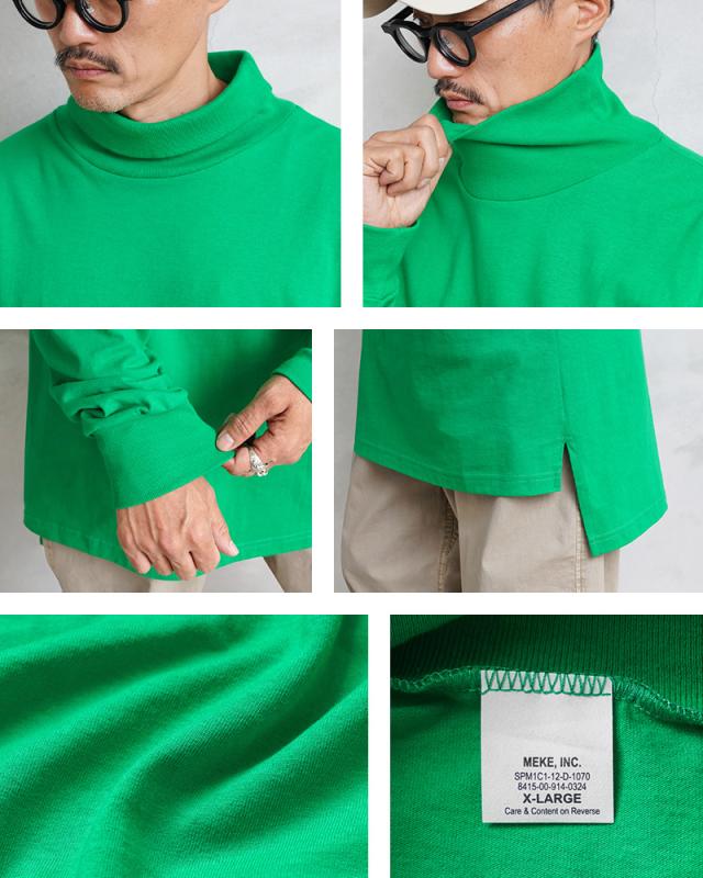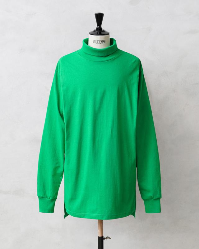 米航空母艦で各種作業を行う甲板作業員(フライトデッキクルー)が使用するトップスで、首元は1回折り返すとベストなタートルネックで、サイドにスリットの入ったロングテールデザインが裾を出して着用するのにも最適なファッション性の高いデザインです。程よく厚手でUSAコットンのようなドライ感のあるさらっとした肌触りのコットン100%素材を使用しており、首元と袖先はリブ仕様で適度にフィットします。グリーンは空母から戦闘機などを短い滑走路で離陸させるための機構であるカタパルトや制動装置を扱うクルー、着陸装置電気技師、航空管制官、整備士、ヘリコプター着陸信号担当者などが着用します。鮮やかなグリーンがタウンユースだけではなく、アウトドアなどでも活躍するカラーです。